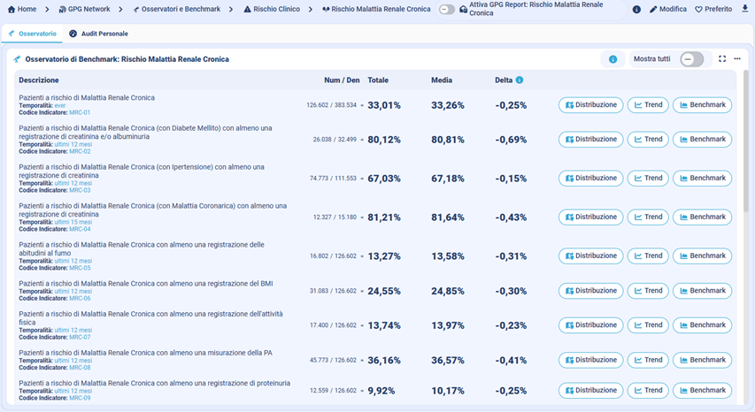 7. Osservatori e Benchmark: inserito il Nuovo modulo in Rischio clinico -> Rischio Malattia Renale Cronica.